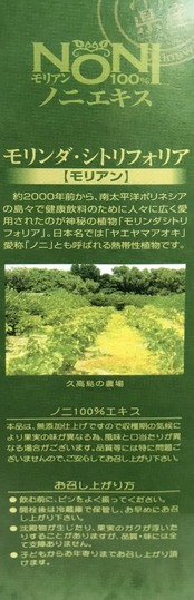●ノニ100%果汁です。独特の風味に抵抗を感じる場合は、お好みでジュース等、他の飲み物で割ってお飲み下さい。